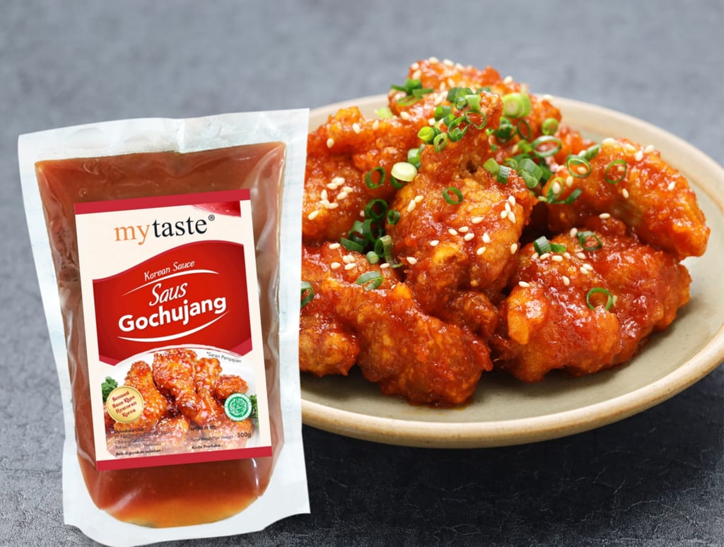 Masukkan ayam goreng tepung dan MYTASTE Saus Gochujang, dan aduk hingga merata