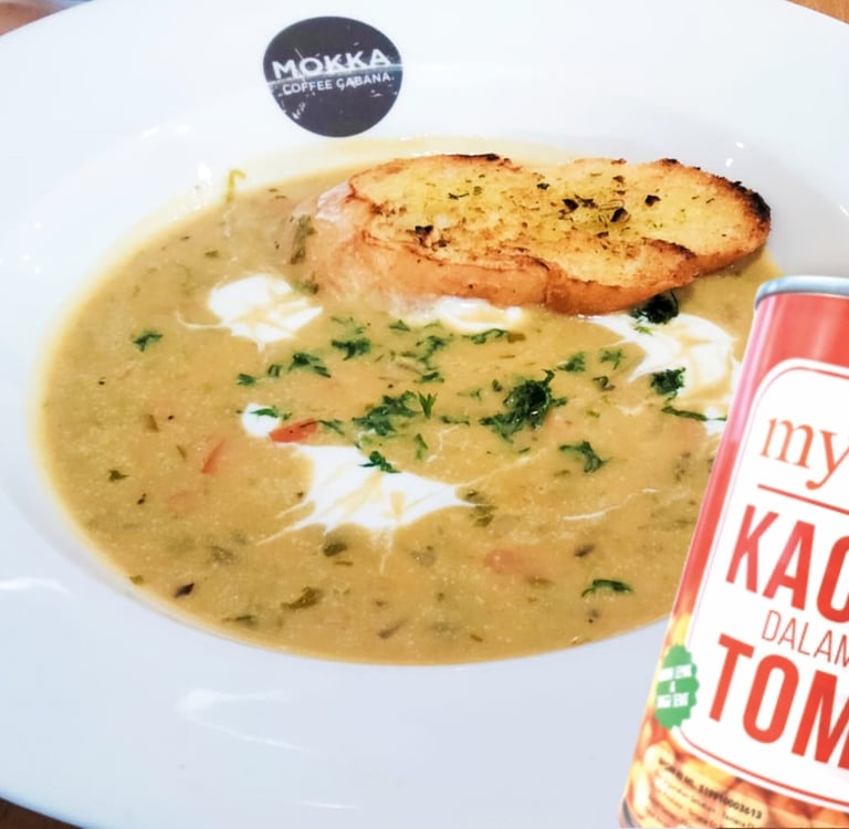 Mau menu diet tapi tetap enak? Sobat MYTASTE wajib coba banget resep ini, Resep Vegan Bean Chowder Soup menggunakan Baked beans MYTASTE